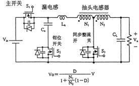 另外,如圖3所示,在采用絕緣變壓器的場合,研究人員還提出了將有源鉗位電路嵌入推挽式轉換器中的方案,可在采用48V輸入和1.2V/70A輸出的條件下實現高達91%的效率。上面講到的幾種電路方式基本上都是一段式結構,最近,出于進一步提高效率的考慮,人們正在加緊研發兩段式結構的轉換器。就普通的轉換器而言,采用兩段式結構將導致效率下降是人所共知的常識,然而,在低電壓大電流轉換器中,對輸出進行同步整流是很普遍的做法,因此,如何實現同步整流操作的高效化便成為了關鍵所在。
