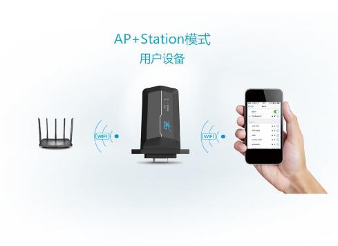 Wi-Fi 模塊不僅支持常用的AP、Station 工作模式,且支持AP&Station 兩種模式同時工作,模塊在接入到路由器的同時,也可以作為熱點允許其他設備連接,例如在工作的同時可方便手機、ipad、筆記本等接入進行無線配置。